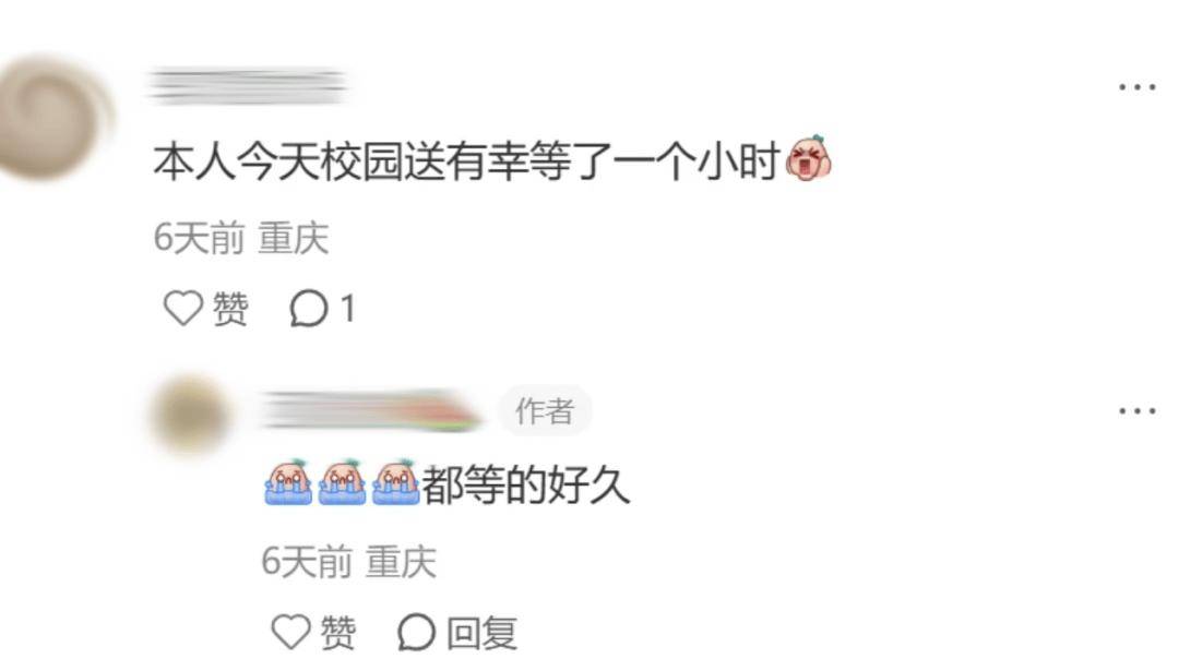 学生们遍及发觉,校糊口的校园送“奇慢非常”。不晓得是骑手运力不脚仍是平台办理欠缺,有学生说本人“11点点的外卖,下战书三点到”。饿急了的学生去校糊口后台留言,为什么外卖一个小时还没配送?回答是,您不想等也能够打消。正在西南大学读书的小蒋说,校糊口平台入驻前,送进学校的外卖偶尔也会超时,但不会这么屡次、迟到这么久。
